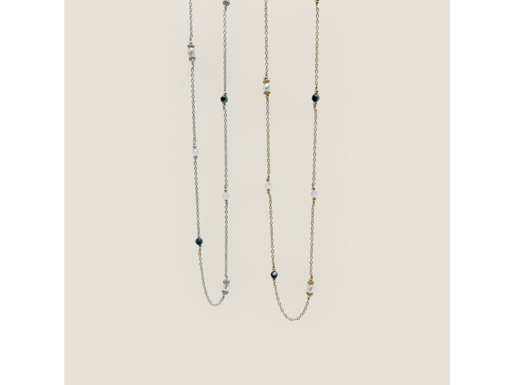 Díky délce 42 cm + 3 cm prodlužující řetízek se přizpůsobí každému dekoltu a skvěle se kombinuje s dalšími šperky kolekce Perlina.