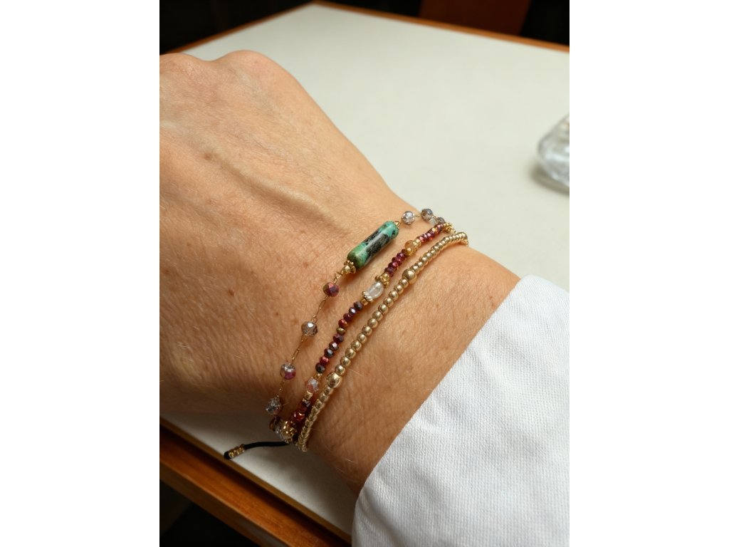 Náramek z kolekce Simplicity spojuje jemnost broušených korálků s energií přírodního minerálu – afrického tyrkysu, který je označován jako kámen proměny a nových začátků.