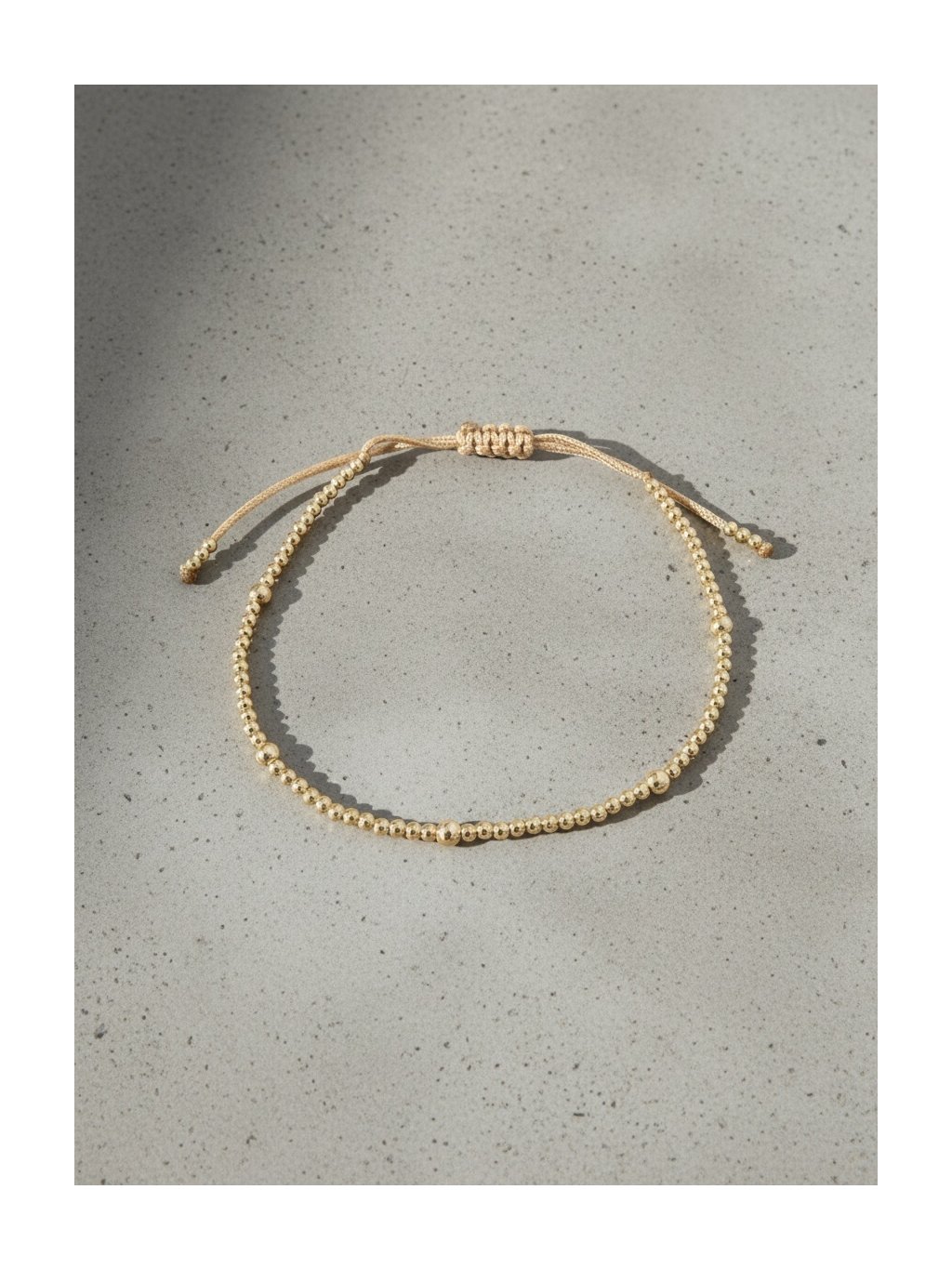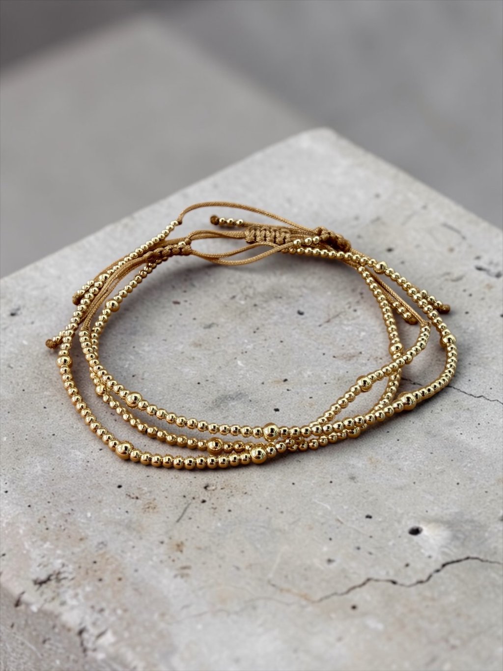 Každý kousek je ručně vytvořen z precizních 2 mm a 3 mm kuliček z gold filled materiálu, které se jemně lesknou a odrážejí světlo při každém pohybu.