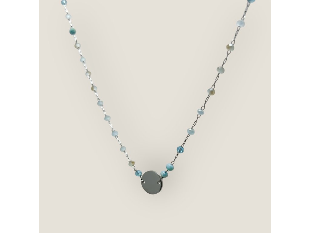 Karma O – náhrdelník s broušenými blue mix korálky a kruhem z chirurgické oceli