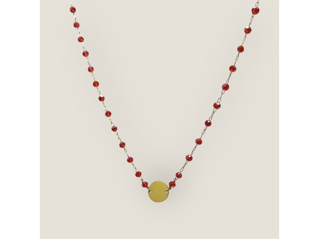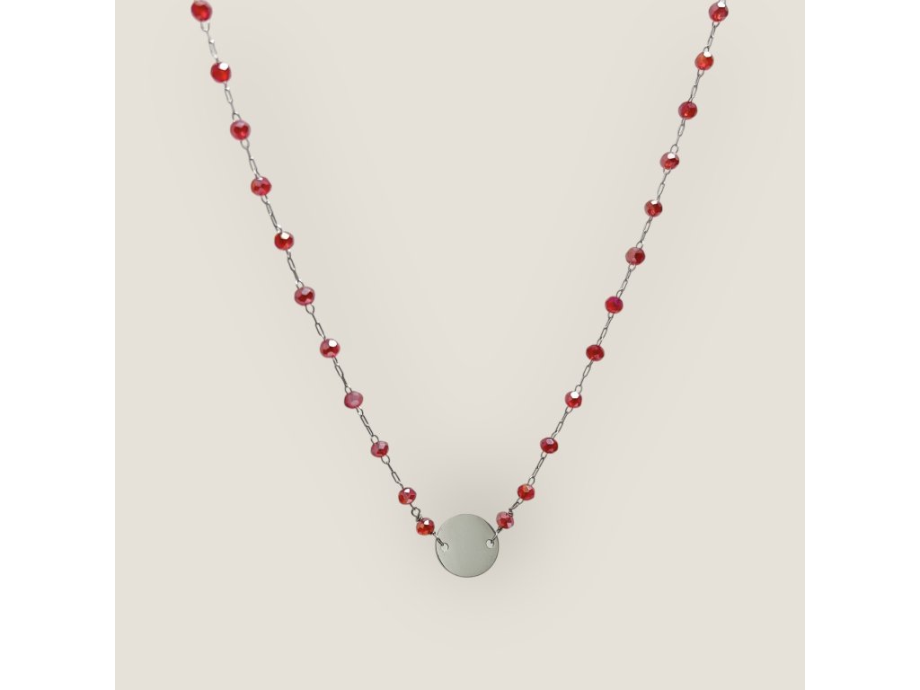 Karma O – náhrdelník s broušenými červenými korálky a kruhem z chirurgické oceli
