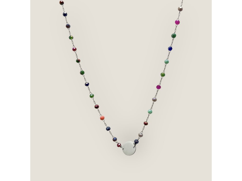 Karma O – náhrdelník s broušenými new autumn mix korálky a kruhem z chirurgické oceli