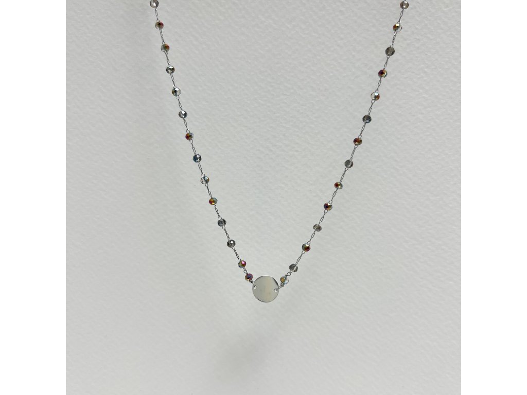 Karma O – náhrdelník s broušenými šedými kouřovými korálky s duhovým pokovem a kruhem z chirurgické oceli