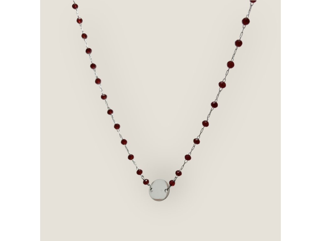 Karma O – náhrdelník s broušenými vínovými korálky a kruhem z chirurgické oceli