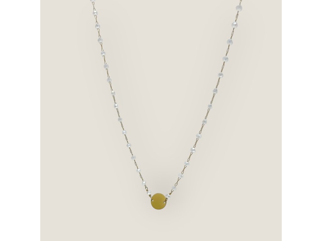 Karma O Pearl – náhrdelník s bílými perleťovými broušenými korálky a kruhem z chirurgické oceli