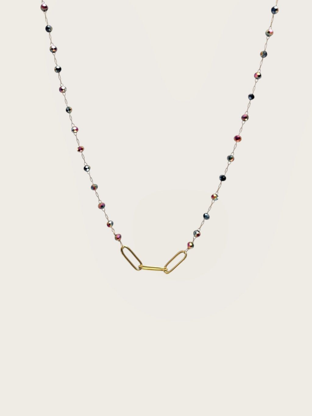 Minimalistický řetízek doplněný jemným článkem vytváří subtilní, ale zajímavý detail. Náhrdelník působí čistě a elegantně, přesto není obyčejný. Skvěle se hodí k vrstvení s dalšími náhrdelníky nebo kombinaci s jemnými náramky.