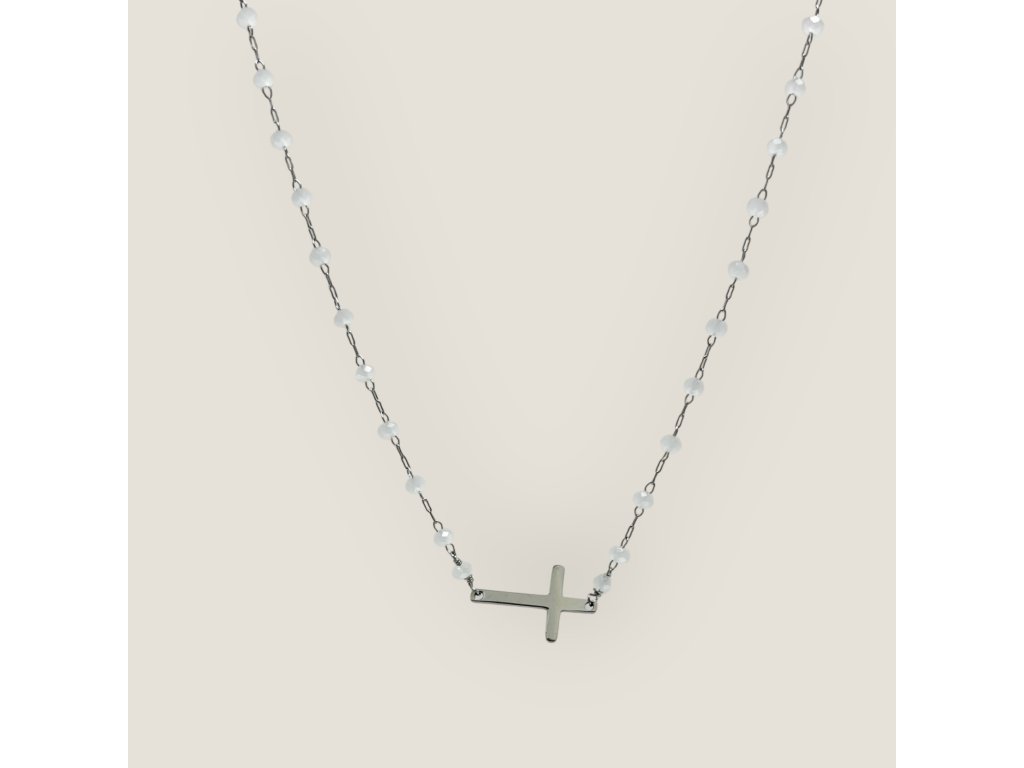Náhrdelník broušené korálky CROSS Bílá perleťová