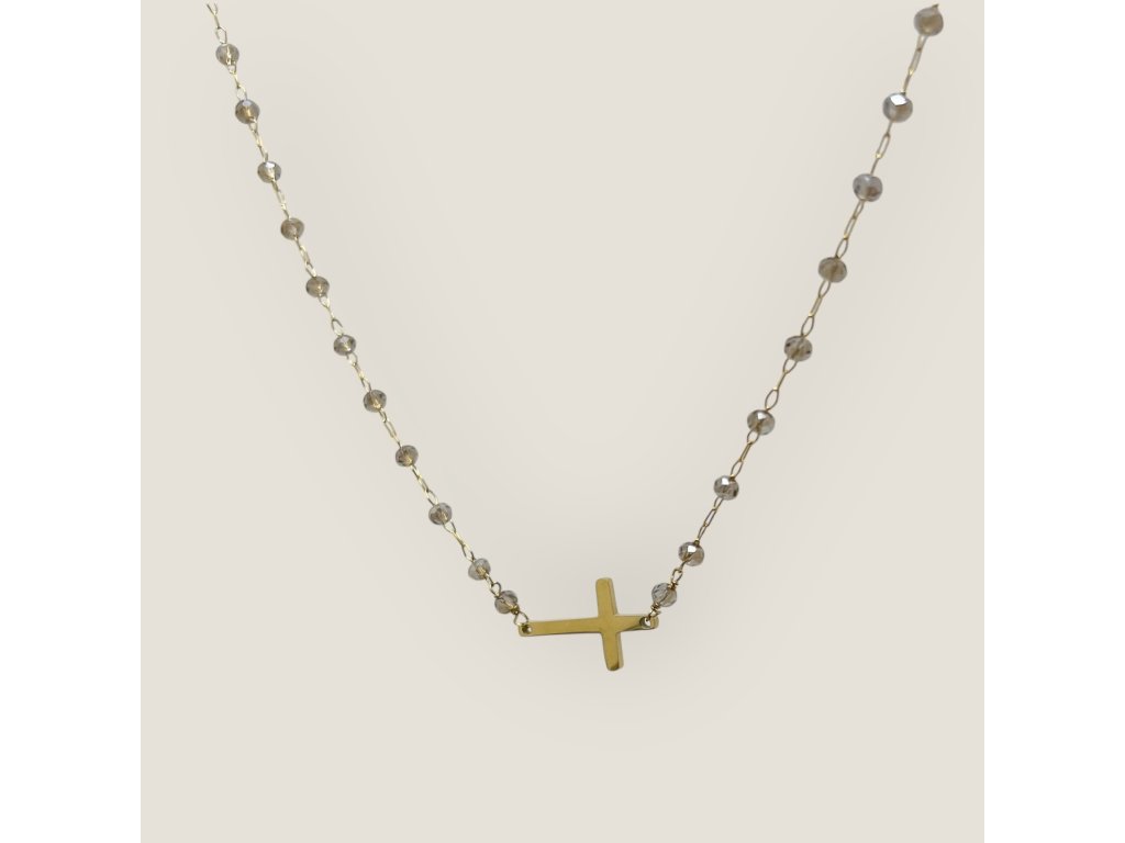 Minimalistický design doplňuje pozlacený křížek, který dodává šperku nejen krásu, ale i hlubší symboliku.