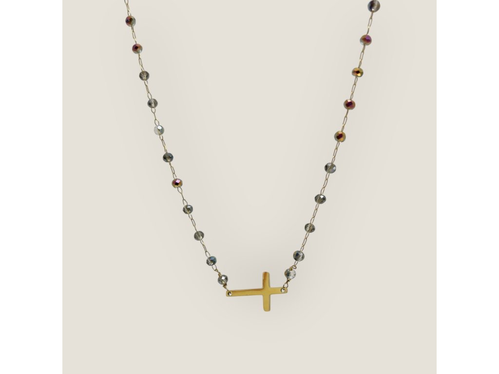 Náhrdelník broušené korálky CROSS šedá s pokovem