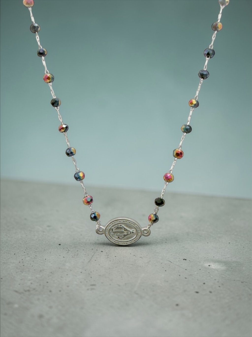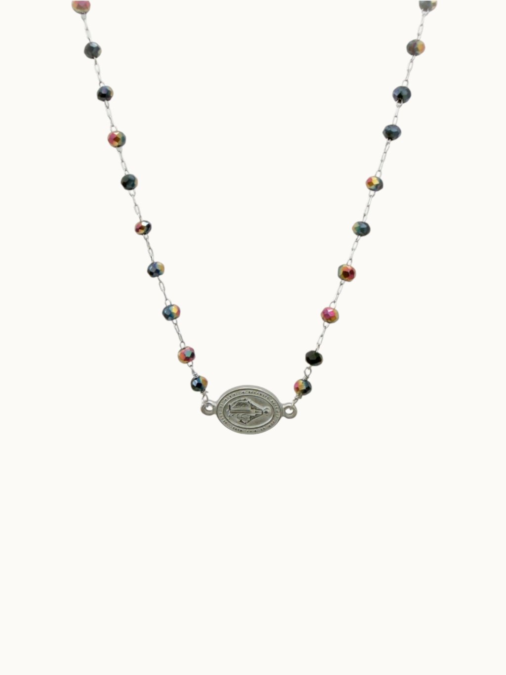 Dominantním prvkem náhrdelníku je ikonický přívěsek Madonky, který je symbolem ochrany, víry a vnitřního klidu. Minimalistický design doplněný drobnými broušenými korálky působí elegantně, jemně a velmi nadčasově.