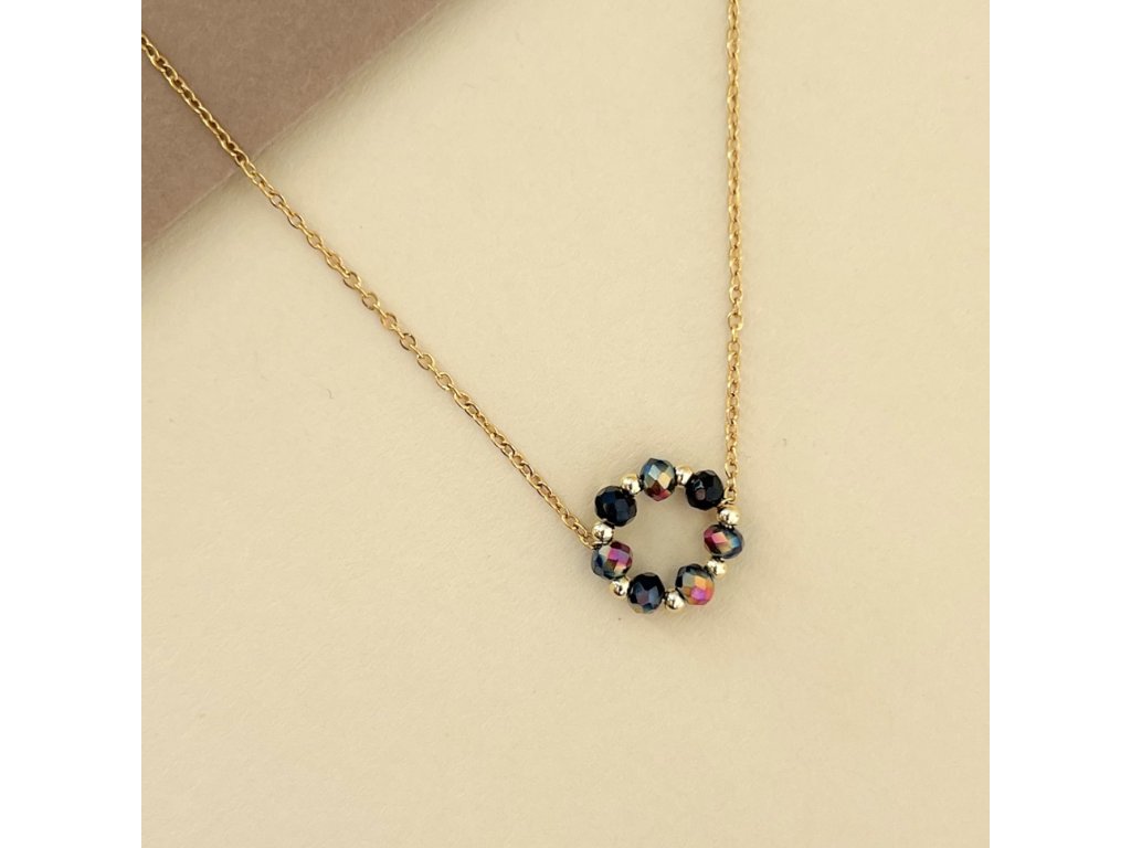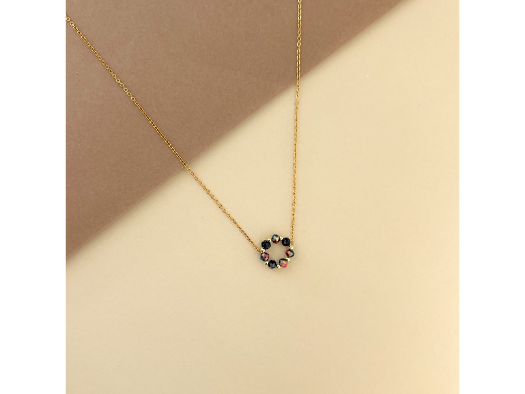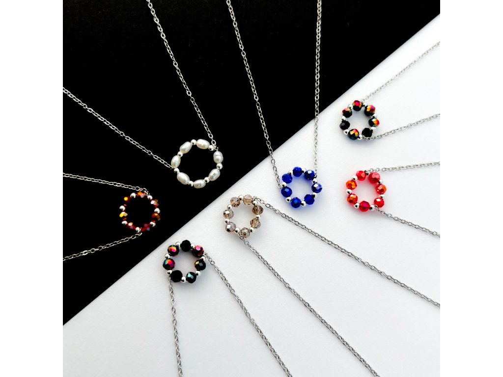 Tento elegantní náhrdelník je k dispozici ve dvou variantách: stříbrné a pozlacené, a je doplněn jemným kruhem karmy, tvořeným z broušených korálků (kruh o průměru cca 10mm).