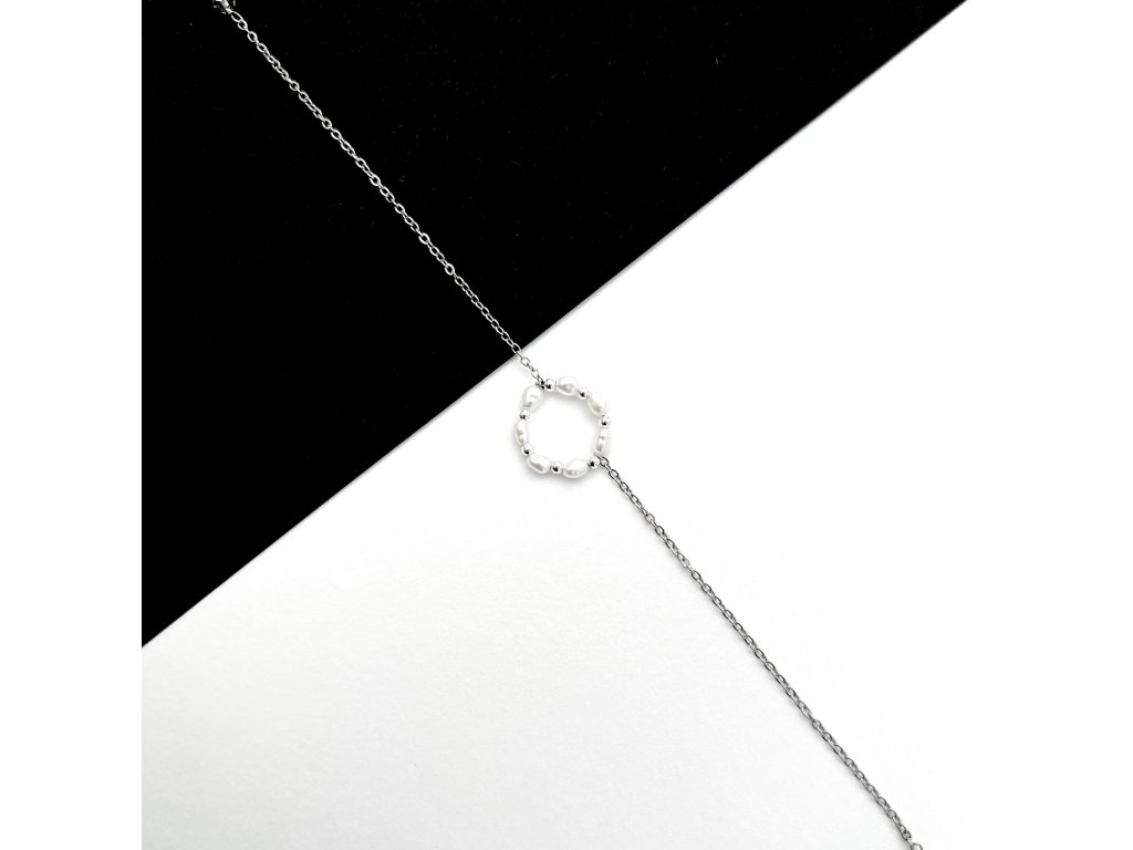 Tento elegantní náramek je k dispozici ve dvou variantách: stříbrné a pozlacené, a je doplněn jemným kruhem karmy, tvořeným z pravých říčních perel  (kruh o průměru cca 13-15 mm).