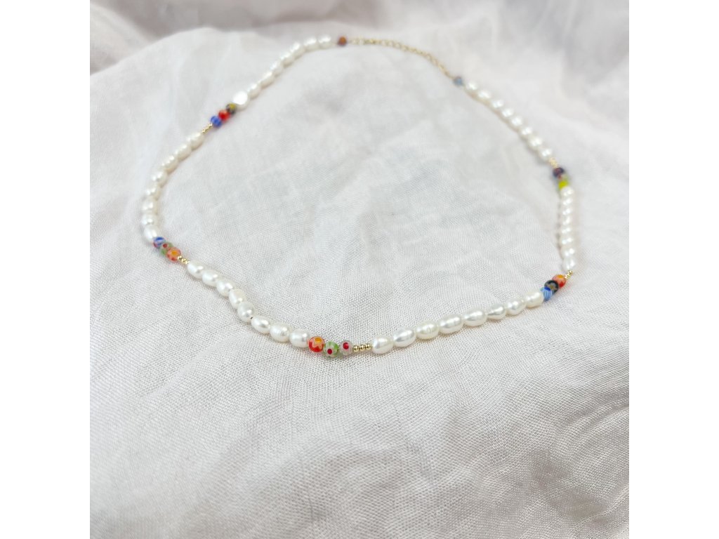 Náš perlový náhrdelník je pečlivě vyroben z pravých říčních perel nepravidelného tvaru, což každému kusu dodává jedinečný charakter a kouzlo. Doplněný o jemné pozlacené korálky korálky z Muránského skla, tento náhrdelník krásně zdůrazní váš dekolt a přidá punc sofistikovanosti každému outfitu. S délkou 39 cm a dalšími 3 cm prodlužujícími očky si můžete být jisti, že náhrdelník padne přesně podle vašich představ.