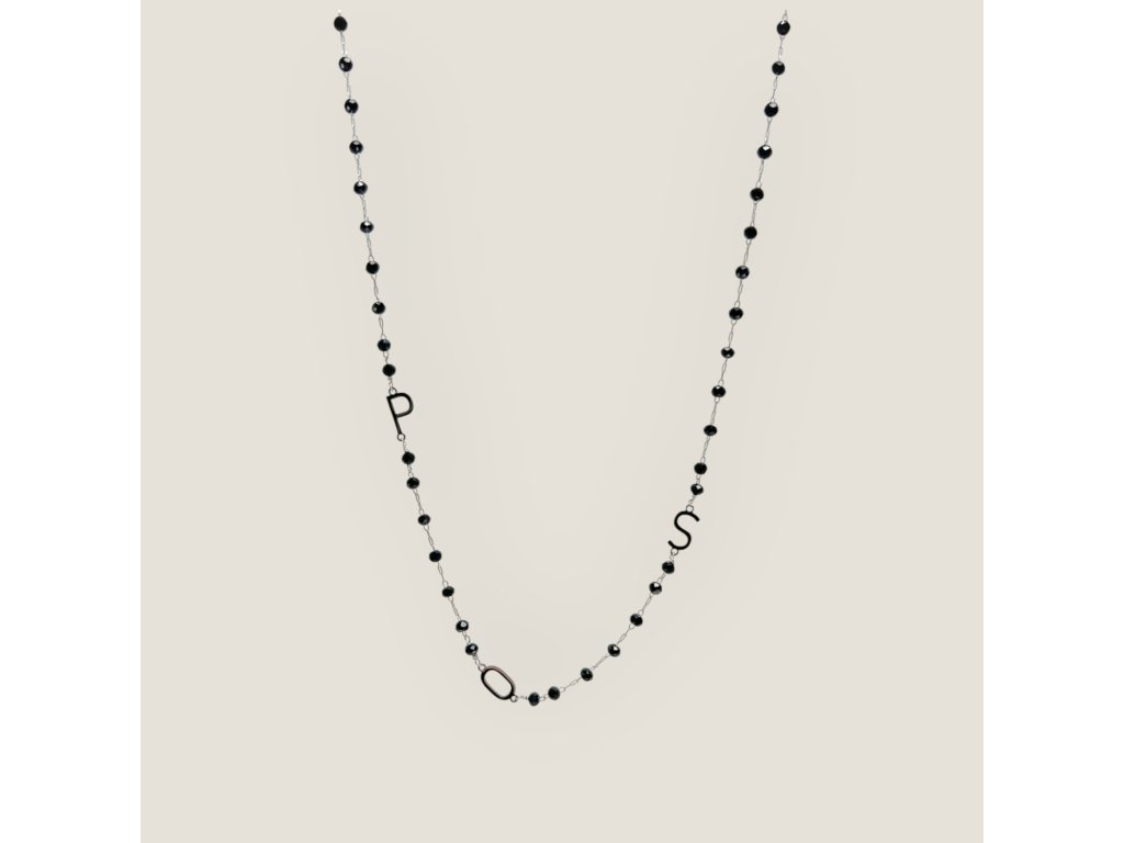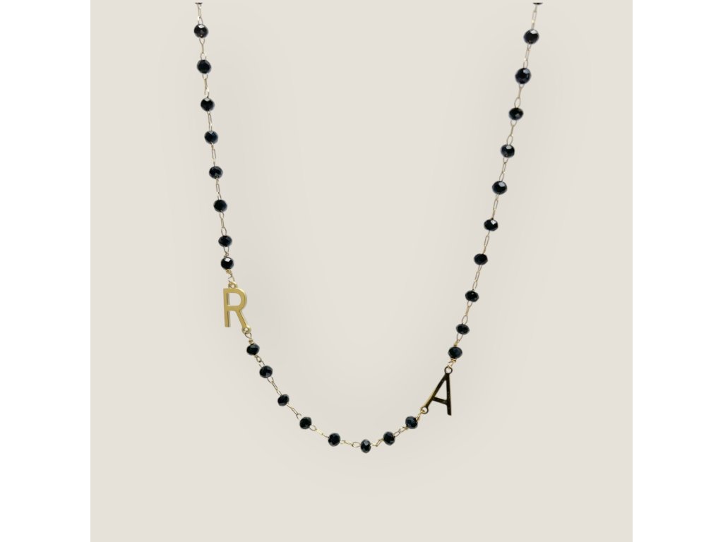 Tento řetízek z chirurgické oceli s písmenkem a černými broušenými korálky je symbolem osobního stylu, rovnováhy a jemné síly.